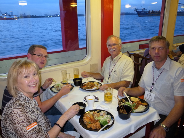Here we are relaxing on the Dragon Boat harbor cruise with friends from Ireland and New Zealand.