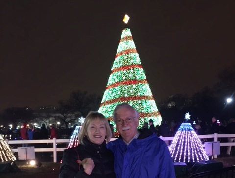 We travelled to Washington DC for Christmas, the first time in 30 years that we had not done Christmas in Orlando (with Paula cooking, etc.).  We had a great time doing touristy things and visiting with family in the DC area.  Here we are at the National Christmas Tree on the Ellipse at the “Zero Mile Marker” of the national highways.