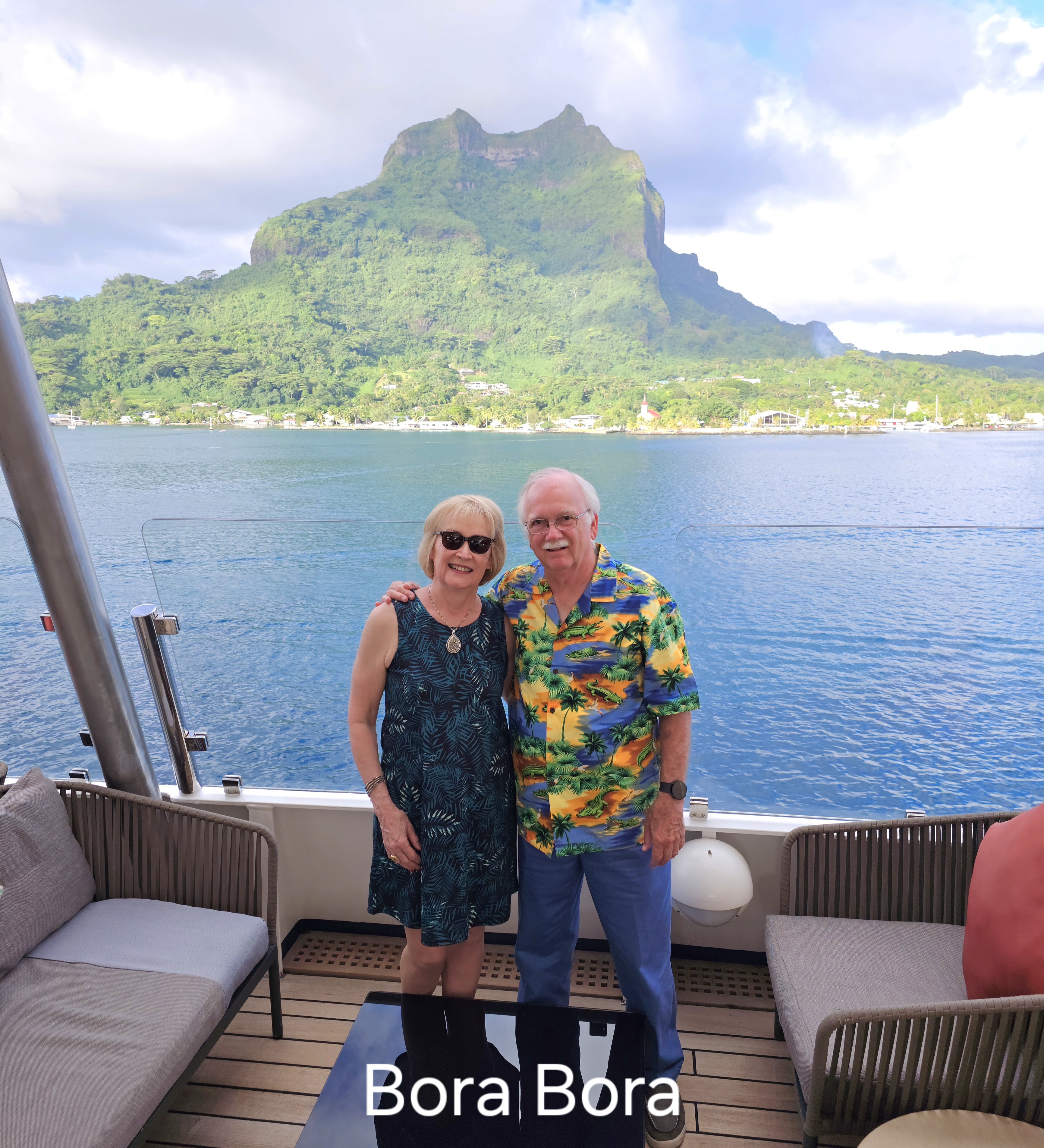 We started out in Papeete on the island of Tahiti and did quite a bit of walking the first two days. After confirming that they speak French there, we tried to get recalibrated to French. First immediate affirmative reaction to a question was “si”. Second was “hai”. “Oui” came out third, so we had to work on that. We boarded the Sea Breeze in the afternoon of the second day and set sail at 6 PM as the sun was setting.